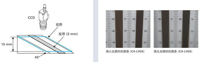 如下图所示,我们在拍摄斜面上粘贴表示高度的胶带的这个对象时,针对调大光圈的情况和调小光圈的情况进行比较。