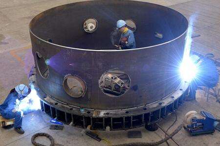 以压力容器生产企业转型升级为例。传统的企业生产焊接车间,在一个工位上,总会看到一幕幕工人头戴面罩、手握焊枪,在一个罐体内进行着焊接作业,边上还有一台焊接设备,而且大部分都是一台焊接设备需要至少两个人配合着使用,一个人做操作,另外一个人要跟踪焊道的焊接,看其是否偏离焊道。