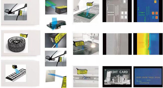微小零件的位置识别;传送带上有无零件的监测;材料重叠和覆盖的探测;机械手位置(工具中心位置)的控制;器件状态检测;器件位置的探测(通过小孔);液位的监测;厚度的测量;振动分析;碰撞试验测量;汽车相关试验等。