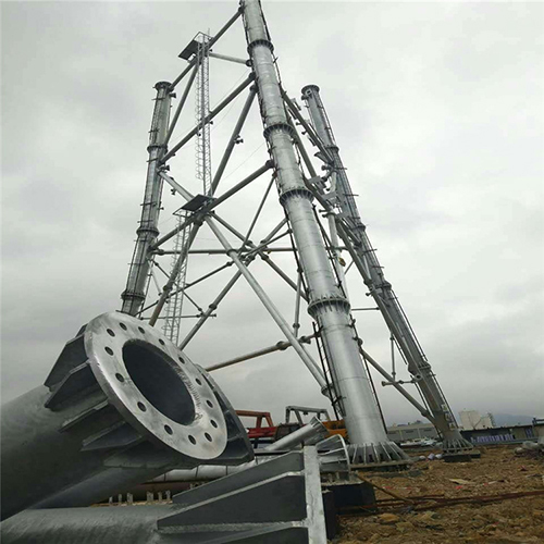 通讯塔由塔体、平台、避雷针、爬梯、天线支撑等钢构件组成,并经热镀锌防腐处理,