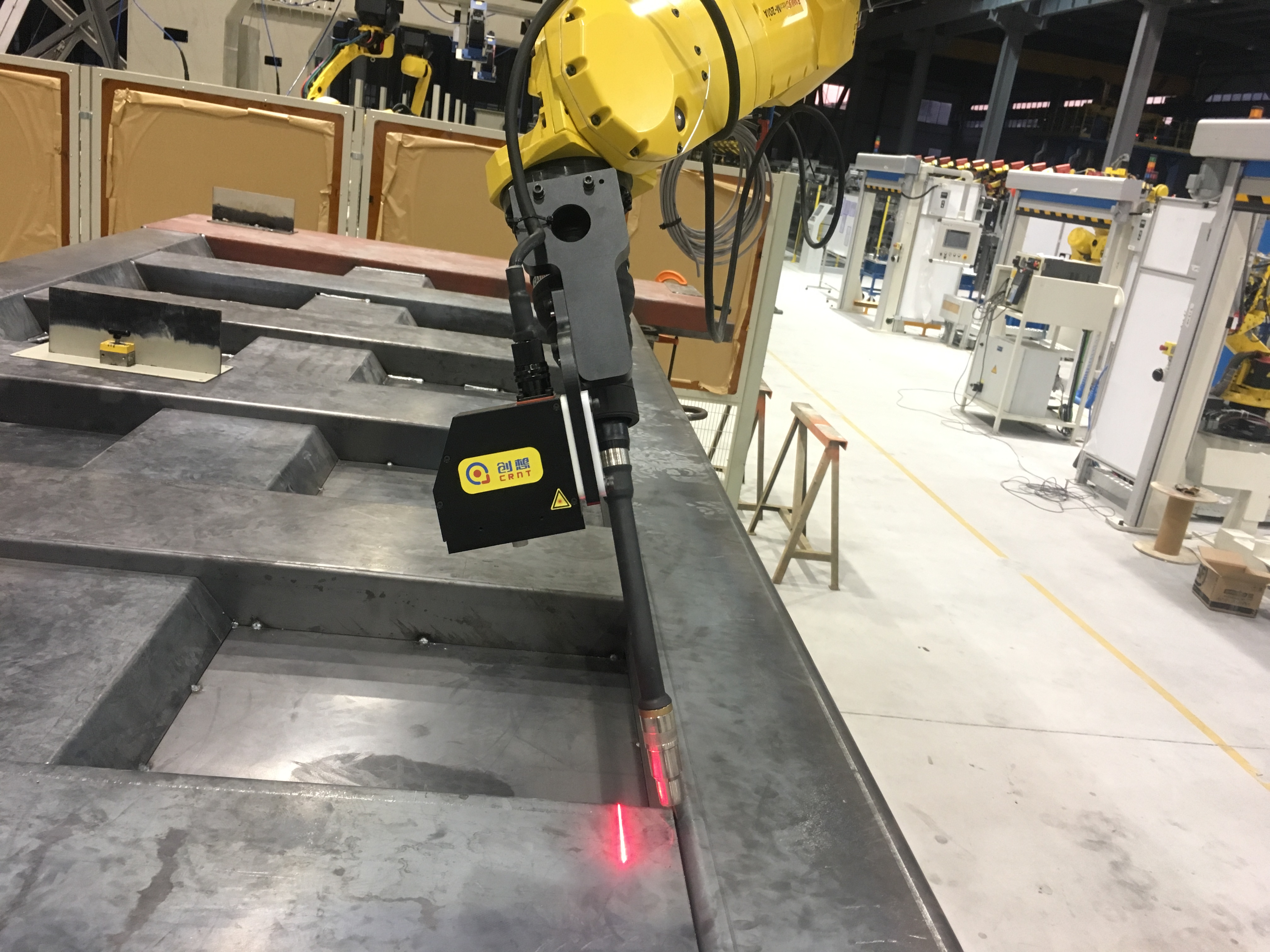 创想激光视觉焊缝跟踪系统,与工业机器人配套后,能够在焊接时自动检测和自动调整焊枪的位置(类似机器人的眼睛与大脑),使焊枪始终沿着焊缝进行焊接,同时始终保持焊枪与工件之间的距离恒定不变,有效改善焊接质量,提高生产效率。